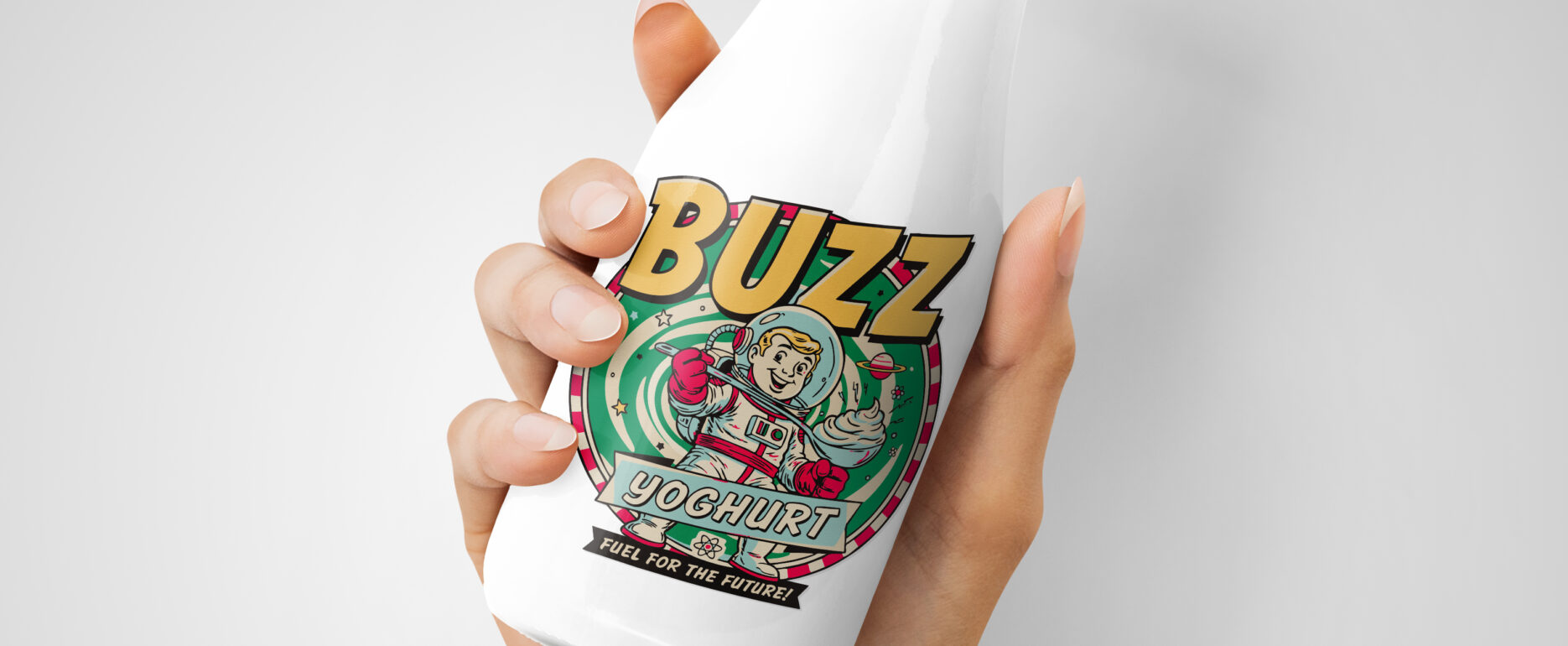 Born from my long-standing interest in wellbeing, nutrition, and ethical entrepreneurship, Buzz is a retro-futuristic probiotic brand that reimagines yoghurt as a daily ritual for the body and mind. It blends design nostalgia with modern science and conscious production — a feel-good brand with a functional backbone.